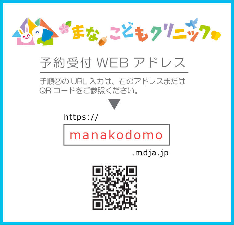 まなこどもクリニックでは、診察待ち時間の短縮、待合室の混雑と院内感染防止のため、診察予約サービスを行っております。