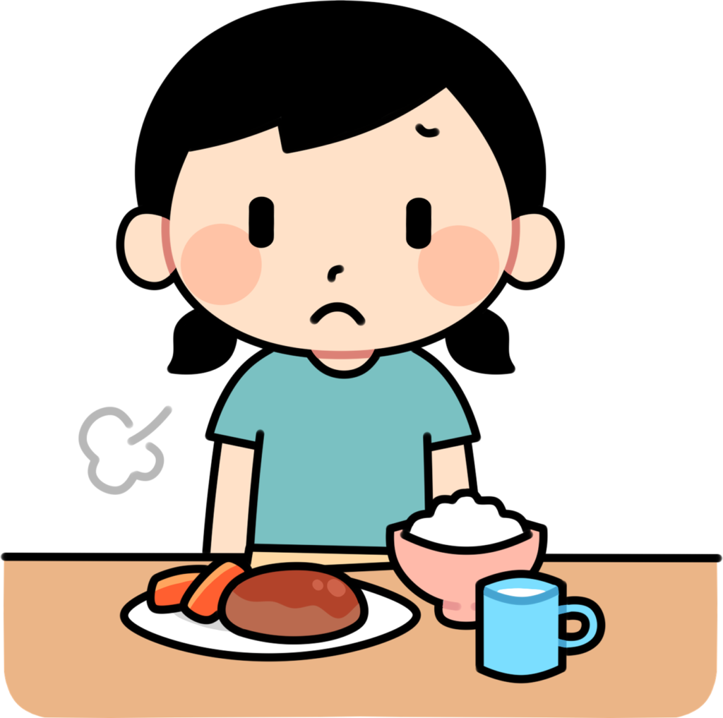 例えば、インフルエンザなどのひどい風邪を引いた後、解熱して1週間程度は、いつも通りの食欲には戻らないかもしれません。また、胃腸炎の治りかけの場合などは、いつも通りの食欲には戻らないかもしれません。