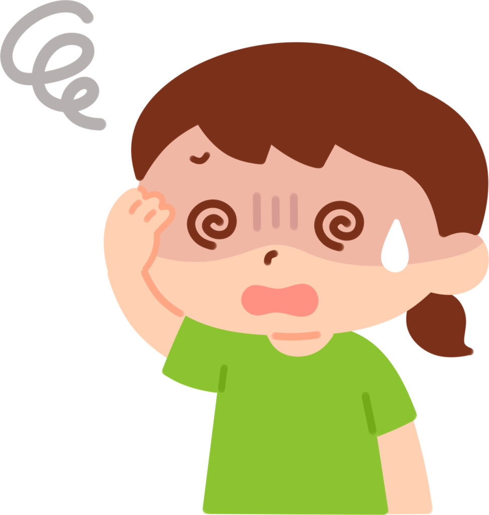 めまいは、いくつかの疾患で起こります。頻度の高いものとしては、脱水症、起立性調節障害、小児良性発作性めまい症、片頭痛に関連しためまい、心因性、前庭神経炎後遺症などが挙げられます。稀ですが脳腫瘍、脳梗塞・脳出血、高度の貧血、不整脈などの循環器疾患に伴ってめまいを起こすこともあるので、早めに一度医療機関を受診したほうが良いでしょう。